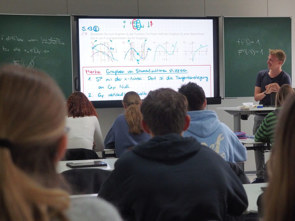 In diesen Jahrgangsstufen arbeitet die Mehrheit der Schülerinnen und Schüler im Unterricht mit Tablets. Selbstverständlich ist es gleichzeitig auch weiterhin möglich, die Aufzeichnungen analog durchzuführen.